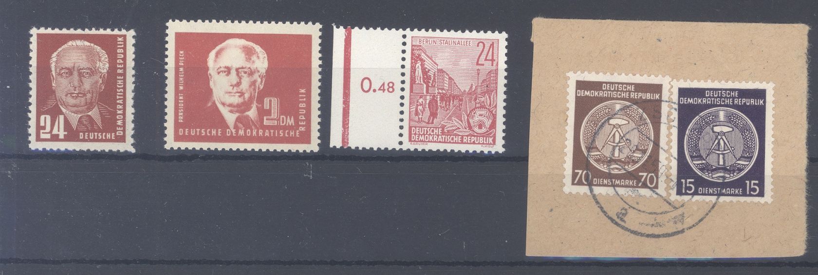 DDR, netter kleiner ** bzw. Briefstück Posten, es sind die Michel Nummern 251b 254ca, 414 XII ** und Dienst A Michel Nummer 39y auf Briefstück vorhanden. Alle Werte geprüft BPP
