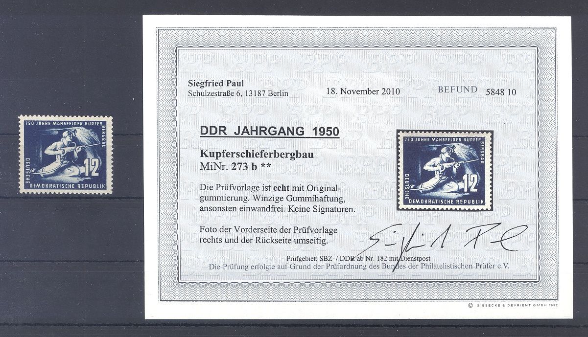 DDR Michel Nummer 273b, 12 Pfg. Freimarke 1950 in der Farbe b ** mit winzigen Gummianhaftungen, sonst ein ordentlicher Wert. Es liegt ein Befund BPP vor, ist mit eingescannt, hat bereits einiges gekostet, nette Ergänzung zur Sammlung!