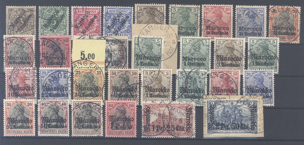 Deutsche Post Marokko, gestempelter Posten auf Steckkarte, dabei auch bessere Werte, Briefstücke,..