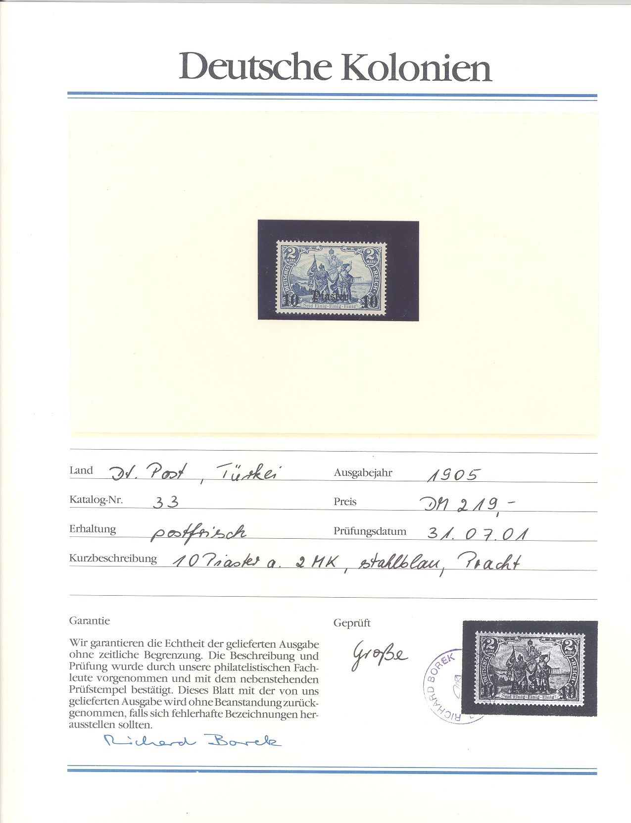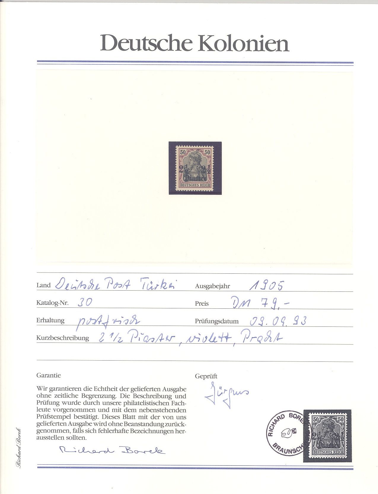 Deutsche Post Türkei Michel Nummer 13II, 30 und 33 ** aus Abo, hatten damals 493 DM gekostet, ein Blatt ist beispielhaft eingescannt.
