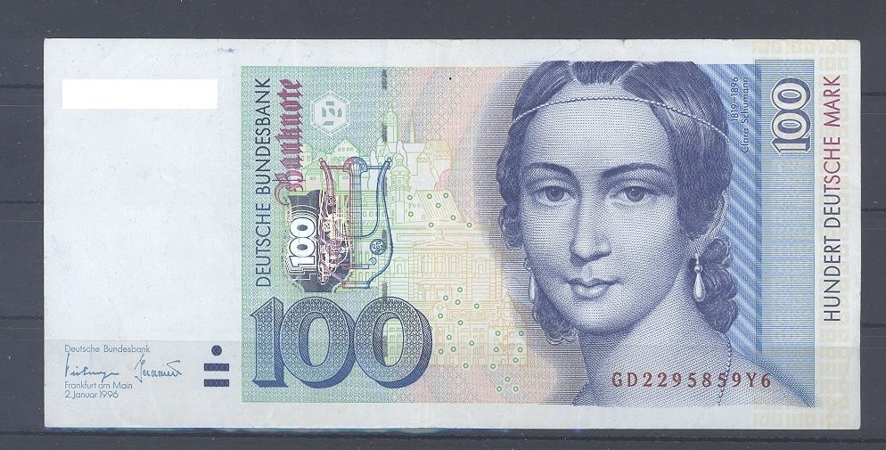 Deutschland, 100 DM Schein Clara Schumann. Zustand III.