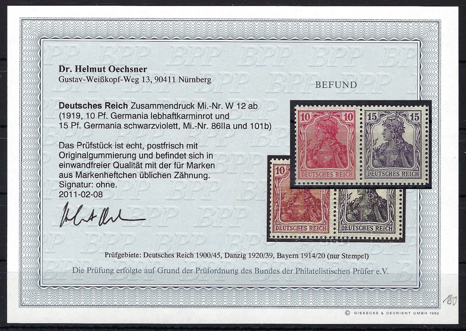 DR Germania ZD W 12 ab ** einwandfrei mit Befund Oechsner BPP, ungefaltet