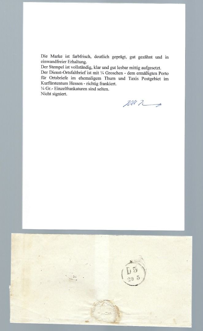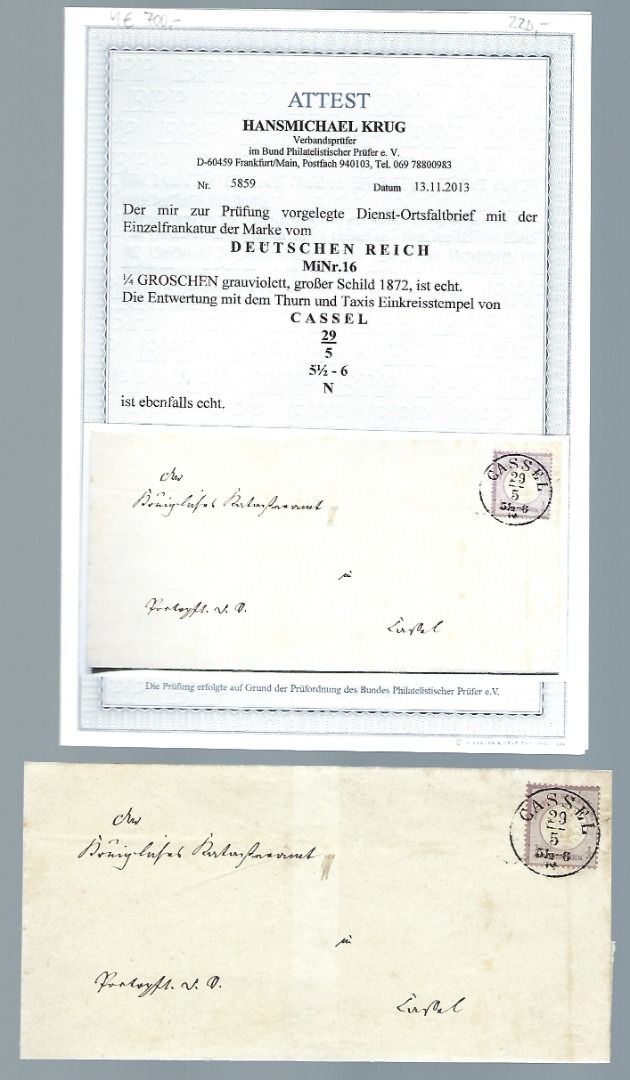 DR Mi 16 als EF Dienst-Ortsbrief Cassel, mit Thurn und Taxis Stempel-Nachverwendung