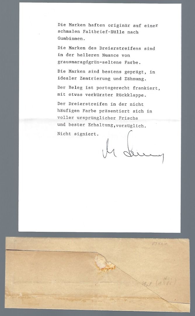 DR Mi 2b im 3er-Streifen als MeF Auslandsbrief mit K1 Loetzen, befördert nach Gumninnen, zischen 1818-1945 Ostpreußen, ab 1945 UdSSR und heute Rußland
