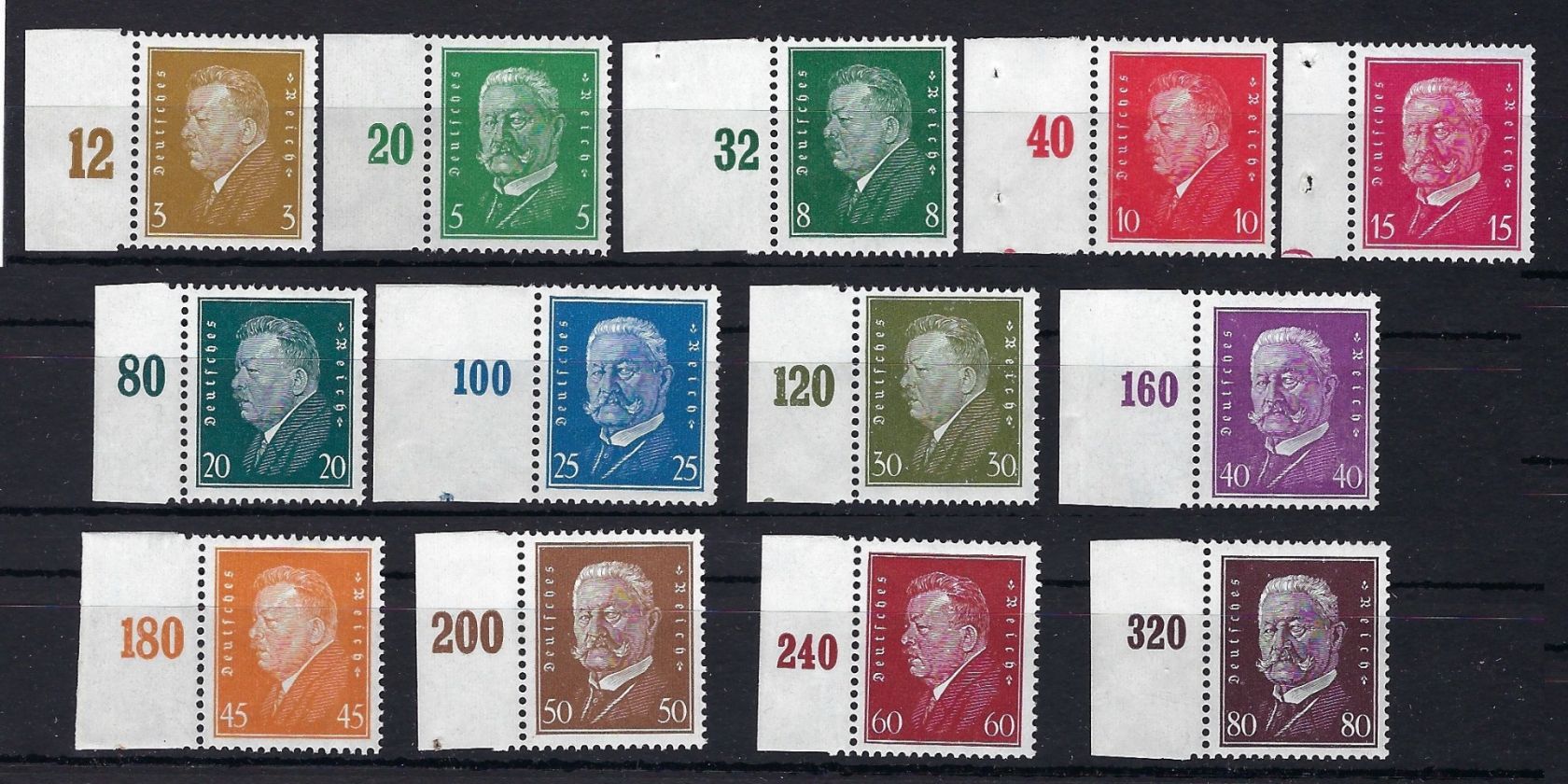 DR Reichspräsidenten, Mi 410 - 422 ** vom Seitenrand, in guter Qualität