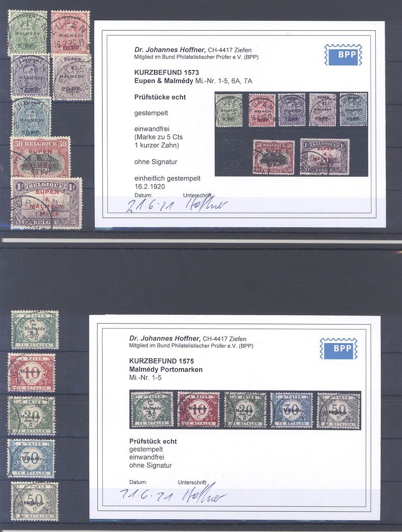 Deutsche Abstimmungsgebiete Eupen Malmedy Gemeinsame Ausgabe 1/7 und Malmedy Porto 1/5 gestempelt. Es liegen zwei Befunde BPP vor, hat bereits einiges gekostet, ist mit eingescannt.