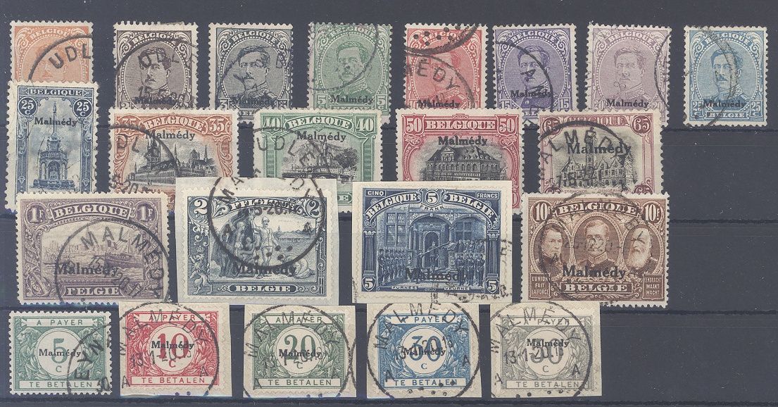 Deutsche Abstimmungsgebiete Eupen Malmedy, Malmedy Michel Nummer 1/17 und Porto Michel Nummer 1/5 gestempelt.