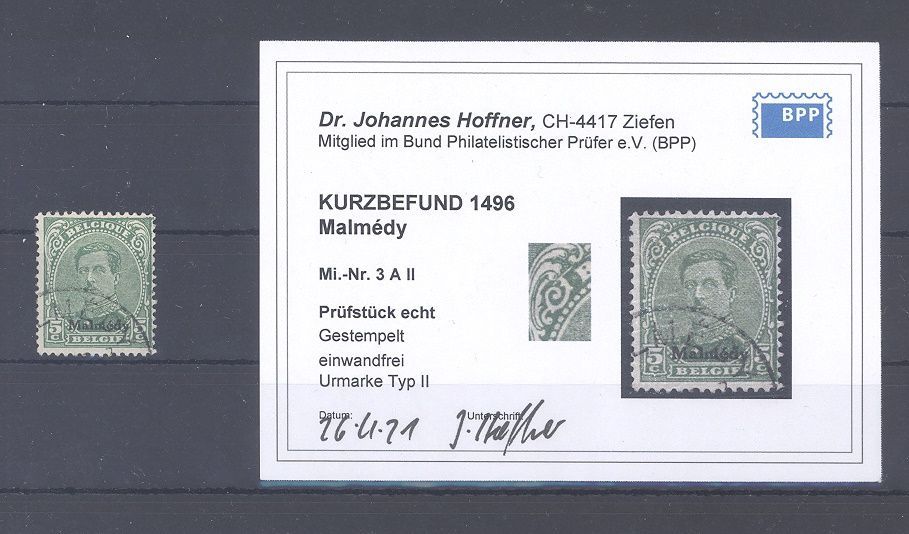 Deutsche Abstimmungsgebiete Michel Nummer 3 A II, 5 C. Freimarke 1920 in der guten Type II gestempelt. Es liegt ein Befund BPP vor, hat bereits einiges gekostet, ist mit eingescannt, der Michel beträgt -,-.