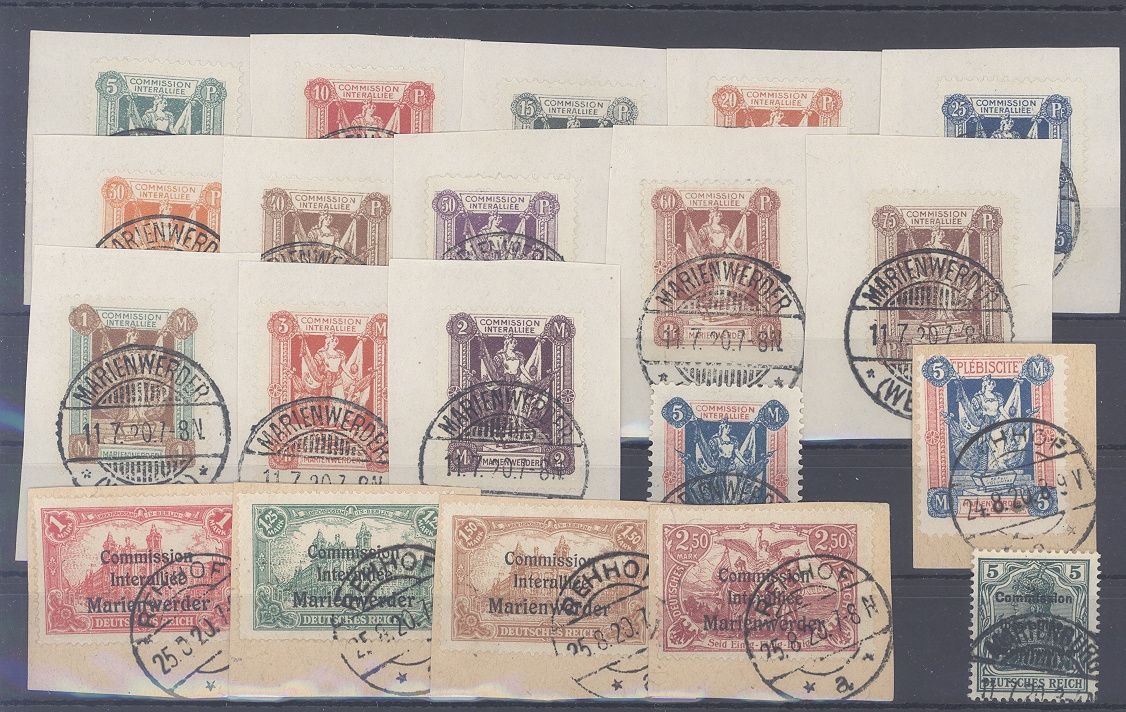 Deutsche Abstimmungsgebiete Marienwerder, gestempelter Posten mit auch vielen Briefstücken, dabei auch Michel Nummer 1/14 und 26/29. Nett!