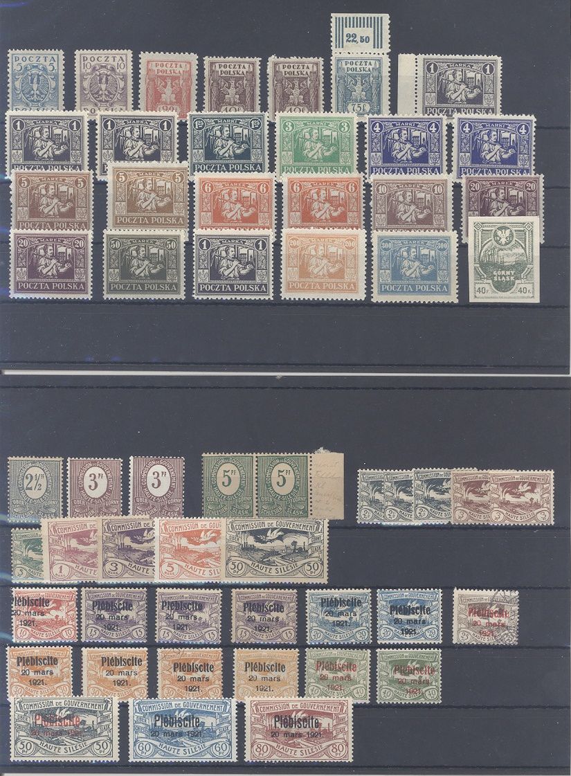 Deutsche Abstimmungsgebiete Oberschlesien, recht umfangreicher */**/gestempelter Posten auf zwei Steckkarten, dabei auch umfangreich Werte aus dem Überdrucksatz und östliches Oberschlesien, einfach zusammengesteckt. Sollte ein nettes Schnäppchen sein...
