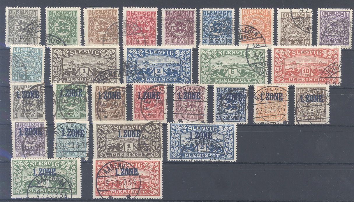 Deutsche Abstimmungsgebiete Oberschlesien Schleswig Michel Nummer 15/28, die Überdruckausgabe 1920 gestempelt.