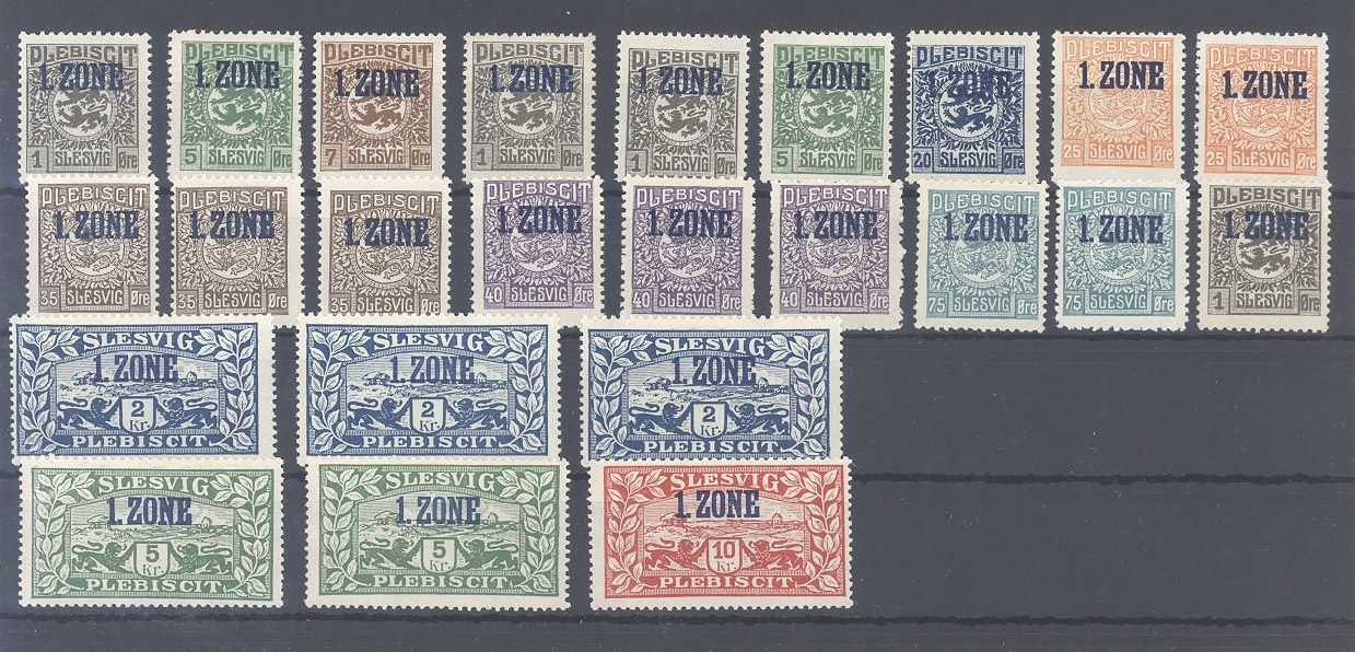 Deutsche Abstimmungsgebiete Schleswig, umfangreicher */** Posten auf drei Steckkarten, einfach zusammengesteckt, dabei auch 2 x Michel Nummer 26 **, werten bereits mit 110,00 Euro