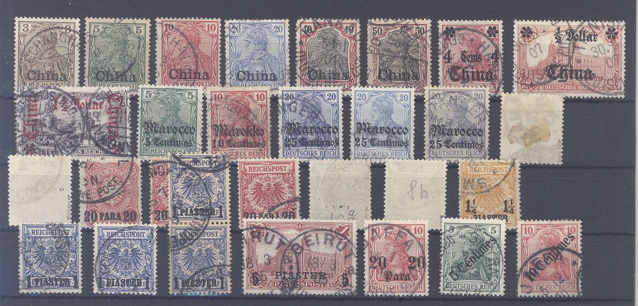 Deutsche Auslandspostämter, umfangreicher gestempelter Posten mit auch vier geprüften Werten mit Türkei Michel Nummer 3c, wertet mit 130,00 Euro, einfach zusammengesteckt. Vollkommen unberechnet, sollte ein nettes Schnäppchen sein!