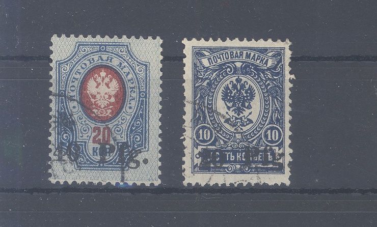 Deutsche Besetzung 1. WK Dorpat Michel Nummer 1/2, Freimarken 1918 gestempelt.