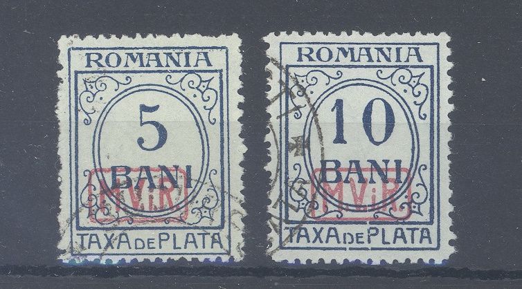 Deutsche Besetzung 1. WK Rumänien Porto Michel Nummer 6/7, Porto 1919 gestempelt.