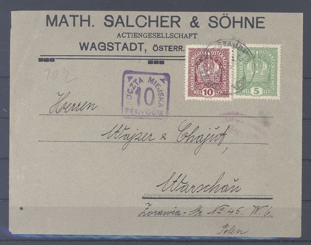 Deutsche Besetzung 1. WK Stadtpost Warschau, sehr interessanter Firmen Zensurbrief aus Wien gelaufen. Tolle Ergänzung zur Sammlung!