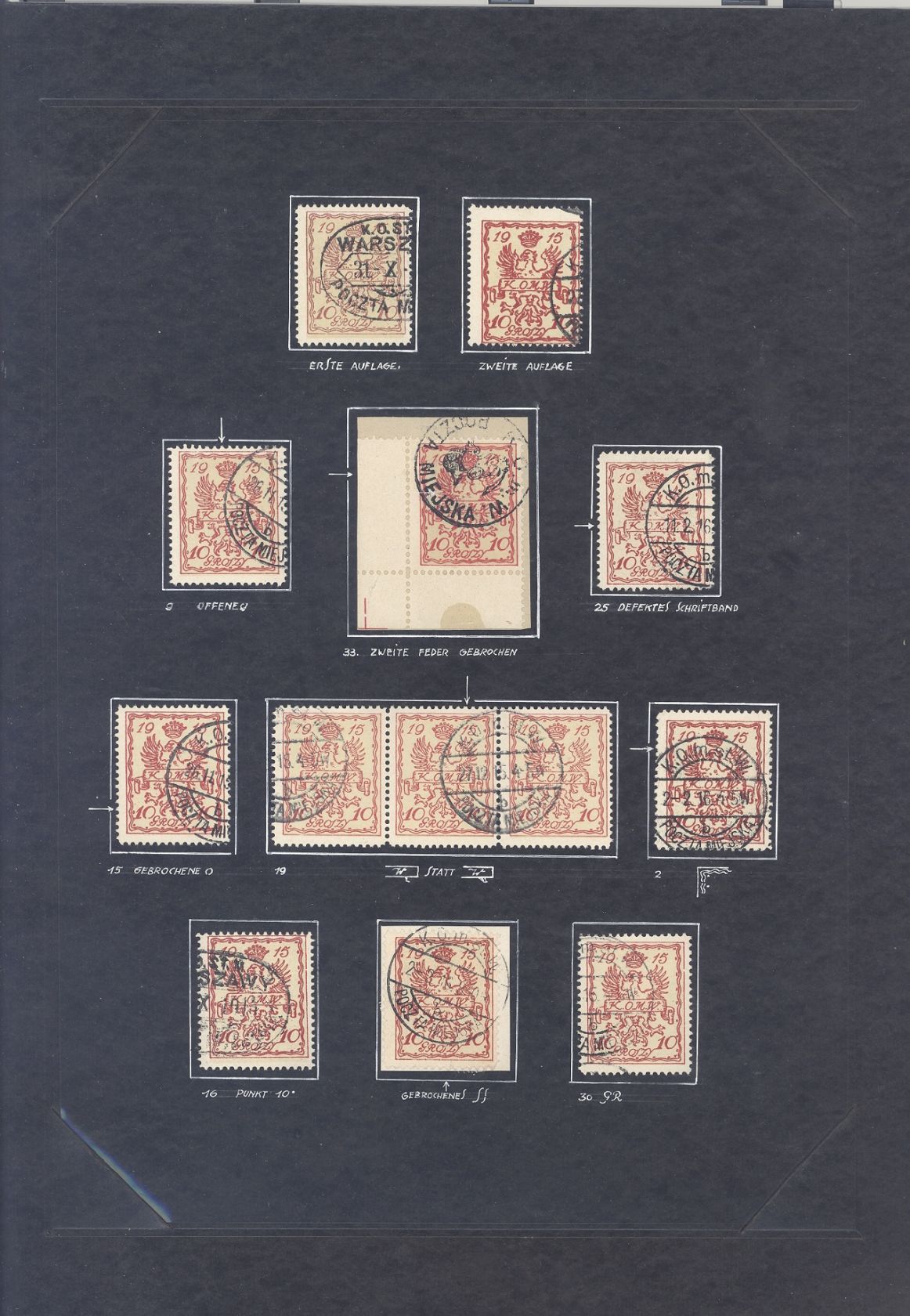 Deutsche Besetzung 1. WK Stadtpost Warschau, interessantes selbstgestaltetes Blatt aus einer alten Sammlung mit Besonderheiten. Nett!