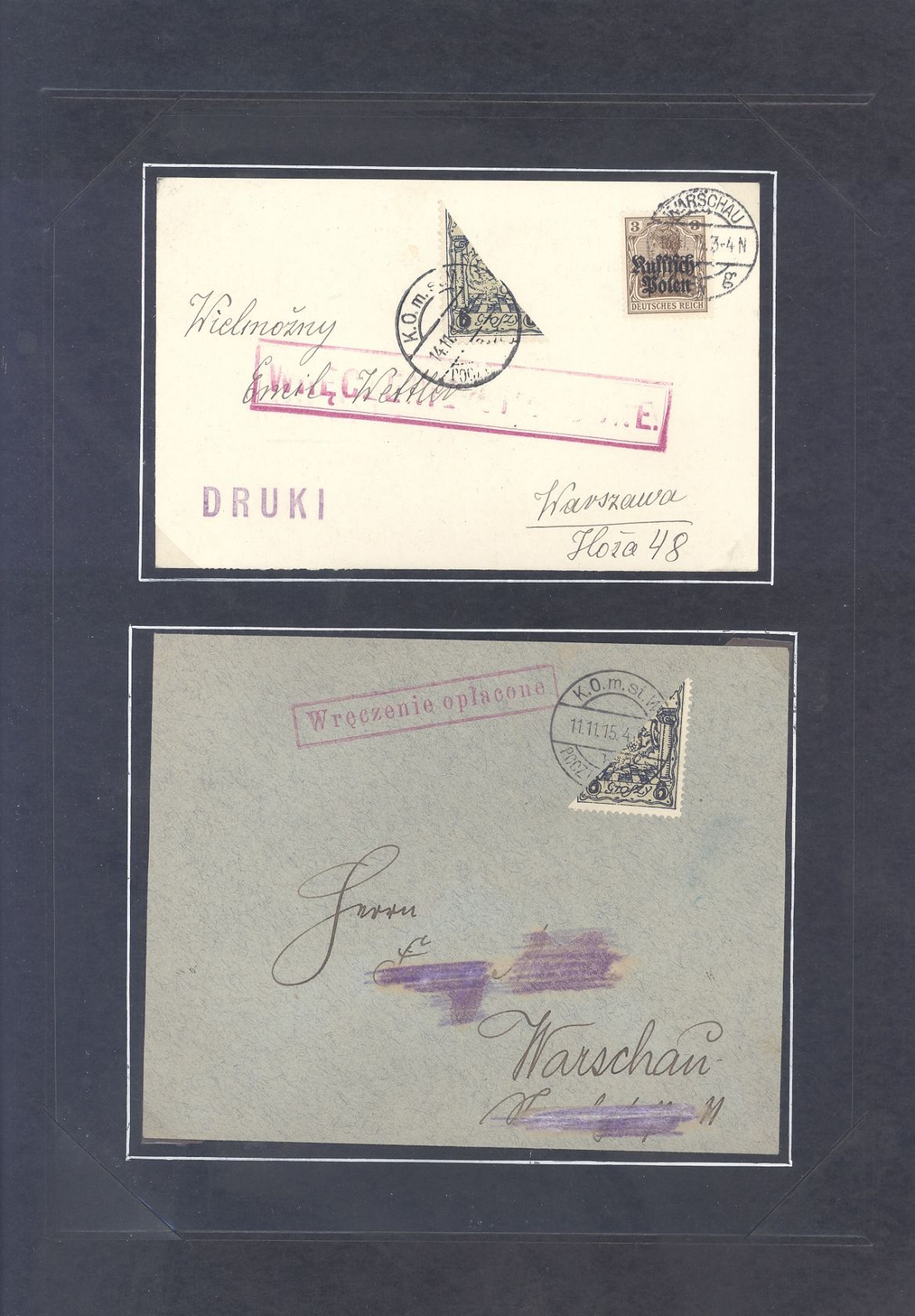Deutsche Besetzung 1. WK Stadtpost Warschau, interessantes selbst gestaltetes Blatt aus einer alten Sammlung mit zwei Belegen. Nett!