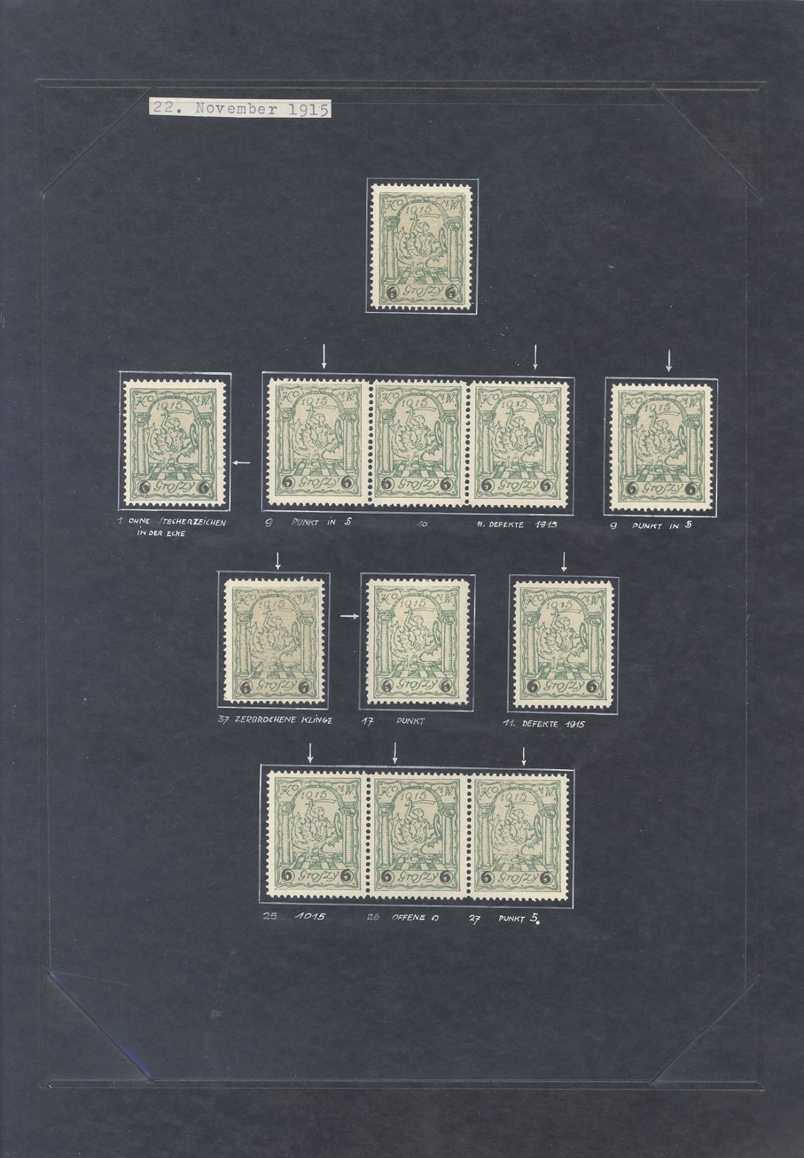 Deutsche Besetzung 1. WK Stadtpost Warschau, interessantes selbstgestaltetes Blatt aus einer alten Sammlung mit Besonderheiten. Nett!