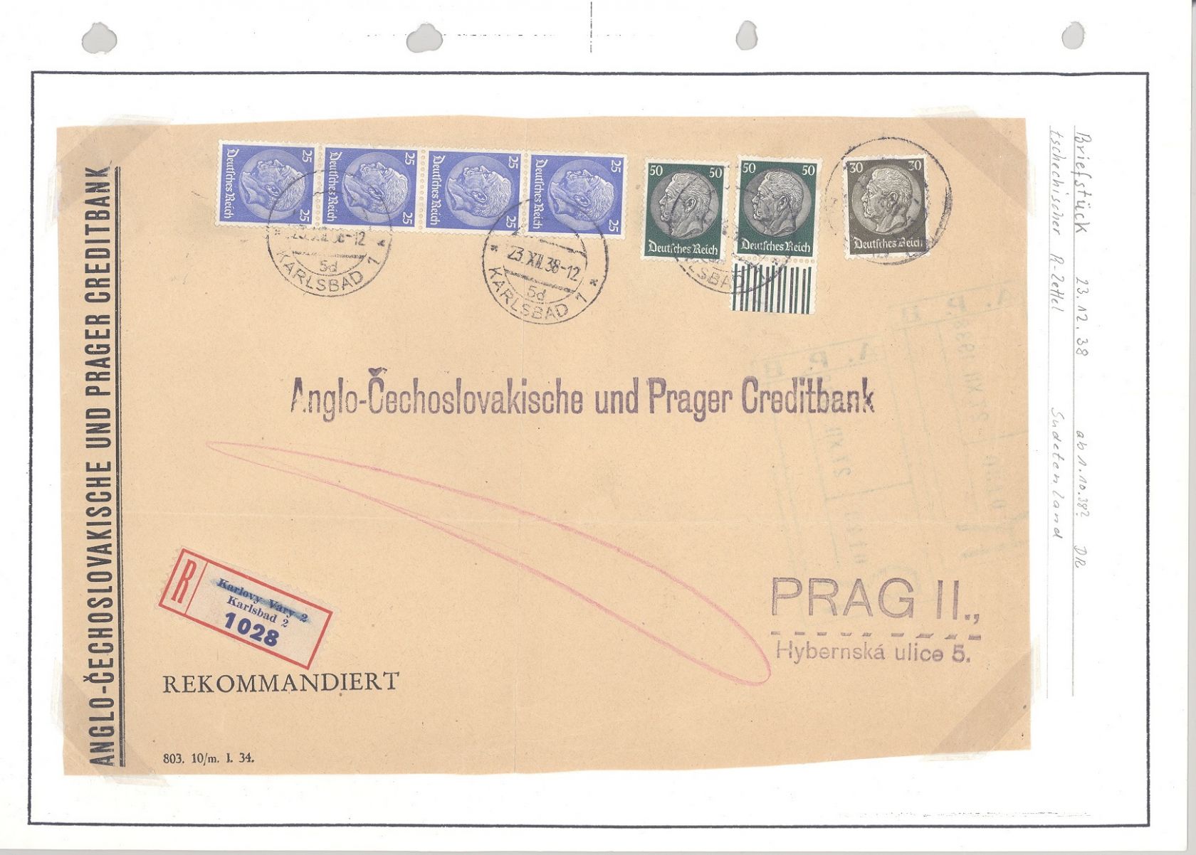 Deutsche Besetzung 2. WK Böhmen & Mähren und Sudetenland, interessante Brief Vorderseite aus Karlsbad. Nette Ergänzung zur Sammlung!