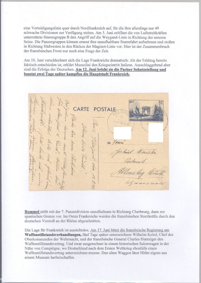 Deutsche Besetzung Frankreich, französische GA als Feldpost vom 14.8.1940 mit Text gelaufen. Nette Ergänzung zur Sammlung!