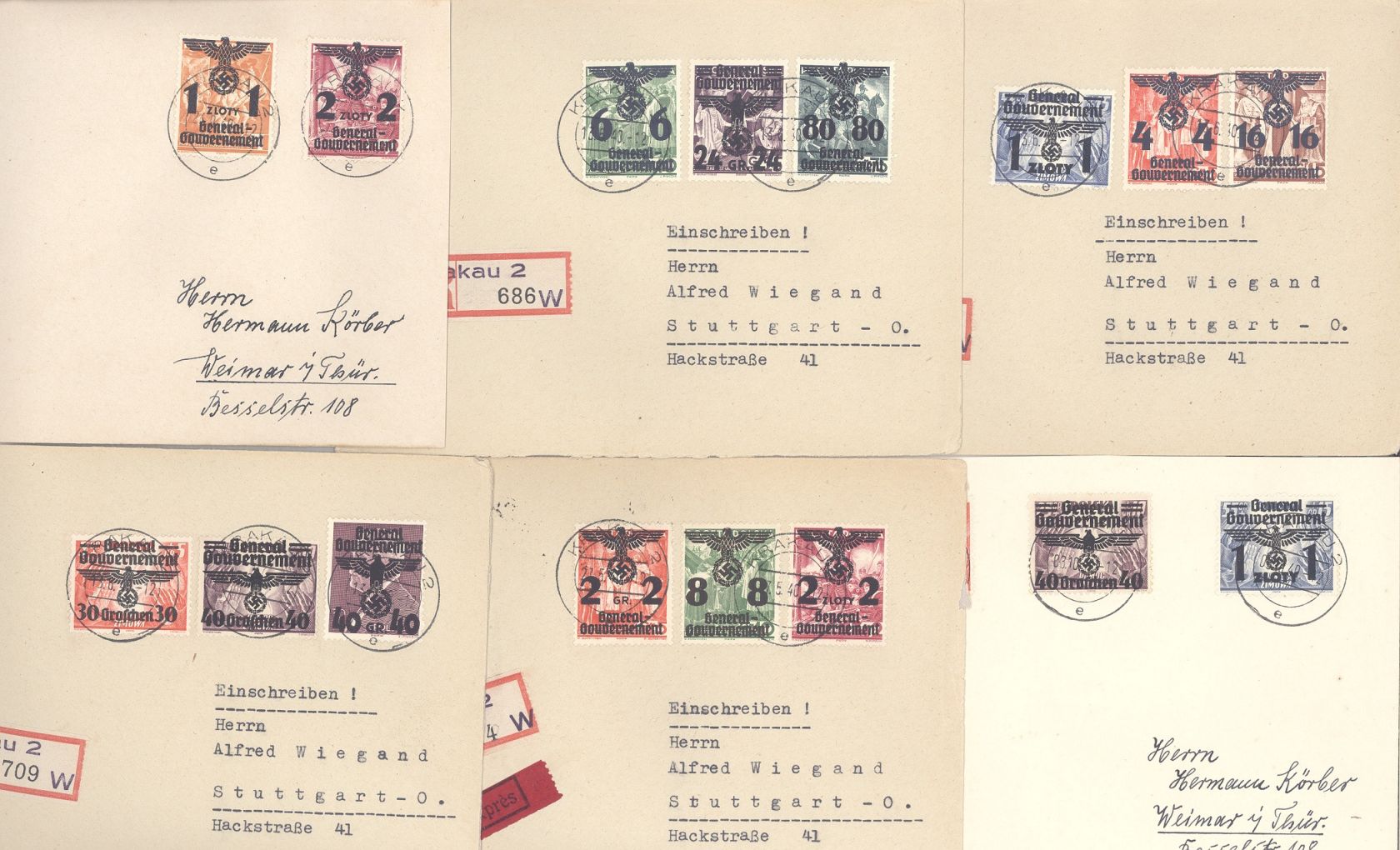 Deutsche Besetzung 2. WK Generalgouvernement, zwölf Belege aus Michel Nummer 14/39, Freimarken 1939. Nett!