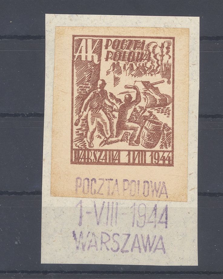 Deutsche Besetzung Generalgouvernement Lokalausgaben Warschau, Post während der Aufstandes, die Ausgabe Poczta Polowa gestempelt auf kleinem Briefstück. Ist ein Probedruck, hat keinen Michel, Seltenheit!