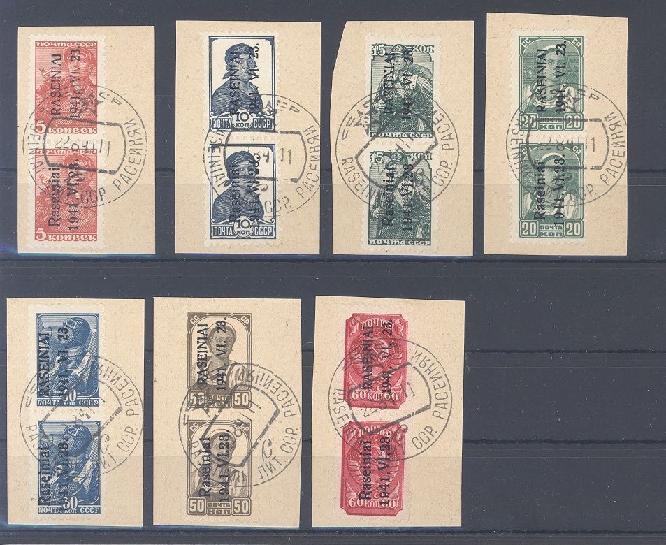 Deutsche Besetzung 2. WK Litauen Michel Nummer 7 I+II als Paare auf Briefstücken mit Gefälligkeitsstempel. Die Briefstücke sind geprüft BPP, nette Ergänzung zur Sammlung!