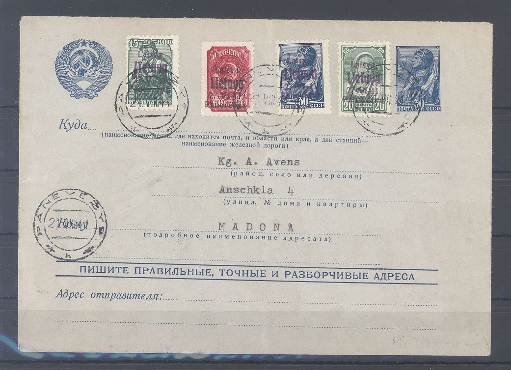 Deutsche Besetzung 2. WK Ponewesch, saubere GA frankiert mit Michel Nummer 6/9 als ZuF gelaufen. Tolle Ergänzng zur Sammlung!