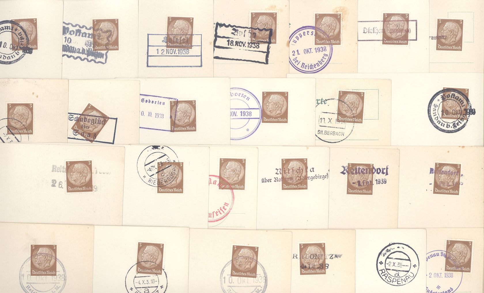 Deutsche Besetzung 2. WK, interessanter Posten von 75 Karten mit wohl nur unterschiedlichen Notstempeln. Ein kleiner Einblick ist eingescannt, nett!
