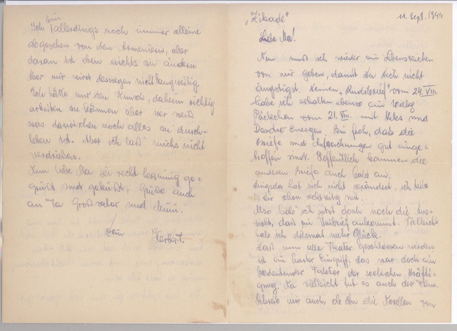 Deutsche Feldpost 2. WK, sauberer Brief mit Inhalt vom 23.9.1944 vom armenischen Gren. Regiment in Frankreich mit der FP Nr. 24319 nach Wien gelaufen.