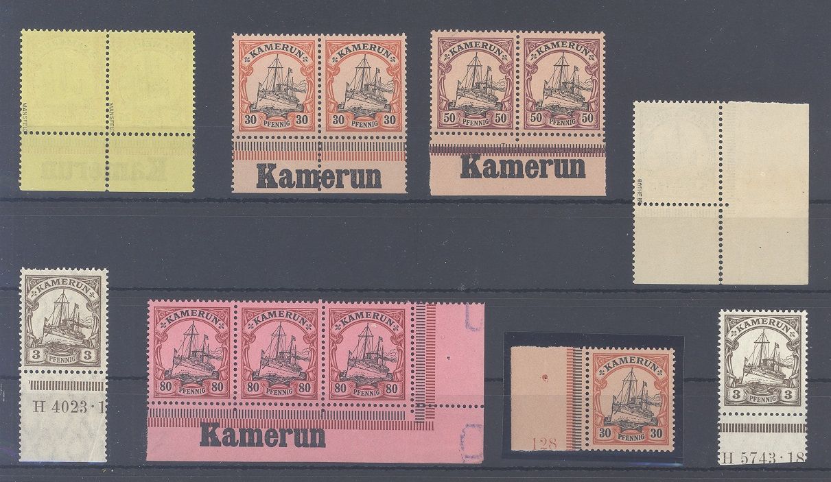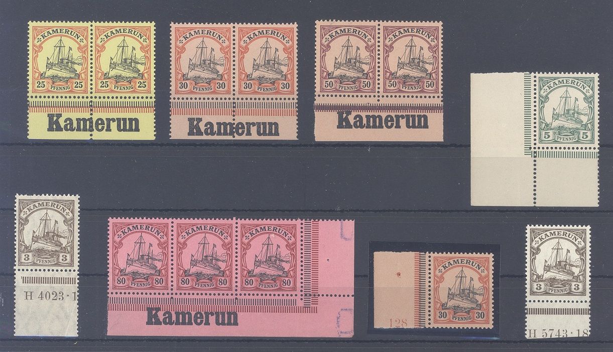 Deutsche Kolonien Kamerun, ** Paare, fast nur Randpaare als Posten und dazu noch zwei Werte mit HAN. Nette Ergänzung zur Sammlung!