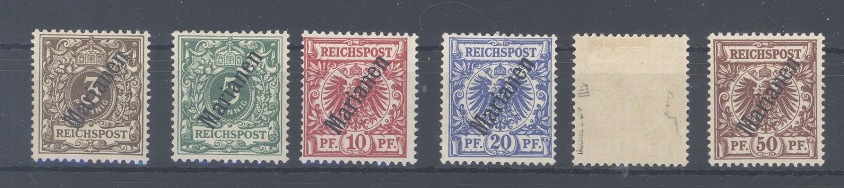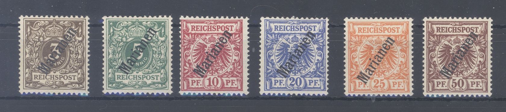 Deutsche Kolonien Marianen Michel Nummer 1/6 II, Freimarken 1900 ungebraucht *, ein Wert ist geprüft BPP.