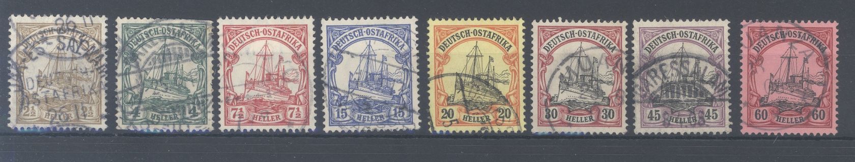 Deutsche Kolonien Ostafrika Michel Nummer 22/29, Freimarken 1905/19 gestempelt.