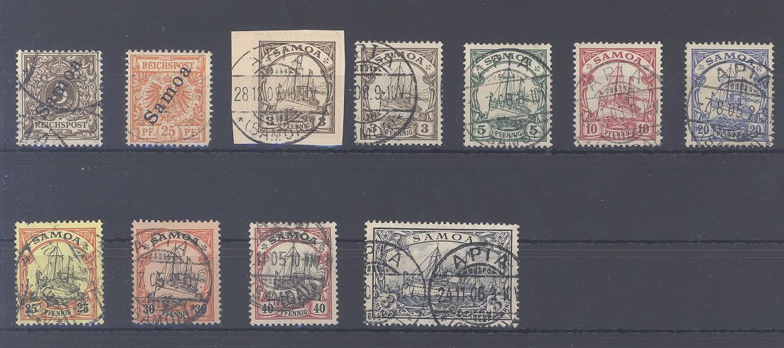 Deutsche Kolonien, Samoa, kleinerer gestempelter Posten auf Steckkarte, dabei auch die Michel Nummer 18.