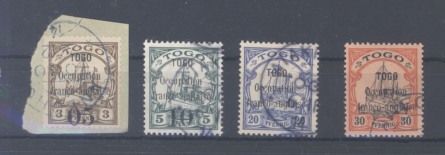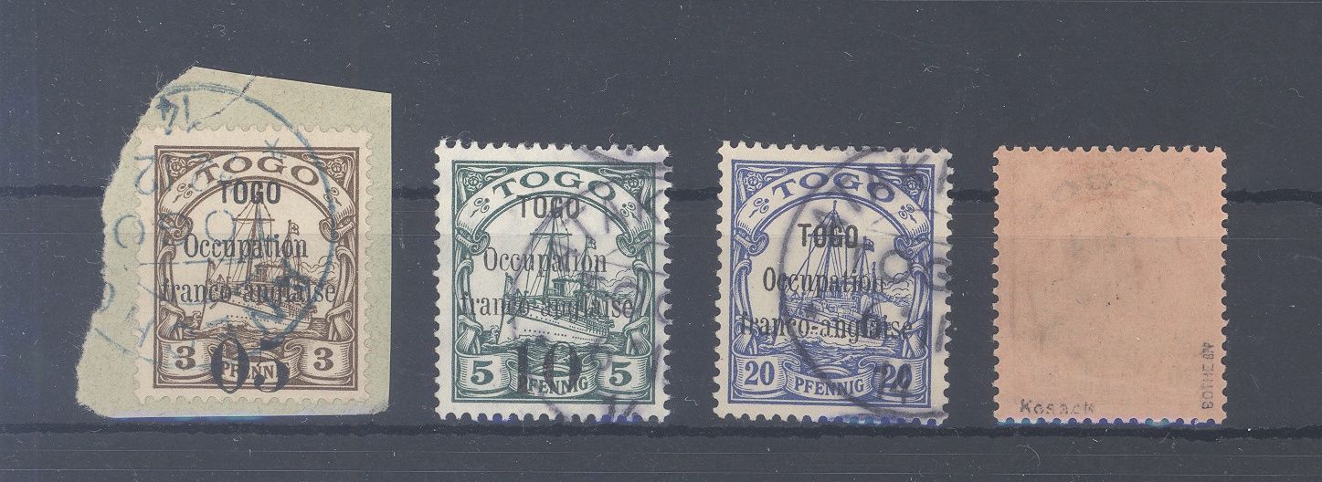Deutsche Kolonien Togo Französische Besetzung Michel Nummer 1/3 und 5 gestempelt, dabei auch ein Briefstück und ein geprüfter Wert. Selten einmal angeboten!