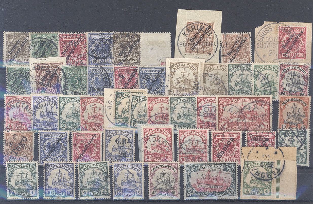 Deutsche Kolonien, umfangreicher gestempelter Posten auf Steckkarte mit auch einem 5 Markwert, G.R.I. Ausgabe Neuguinea und weiteren besseren und besseren guten Werten. Sollte ein nettes Schnäppchen sein