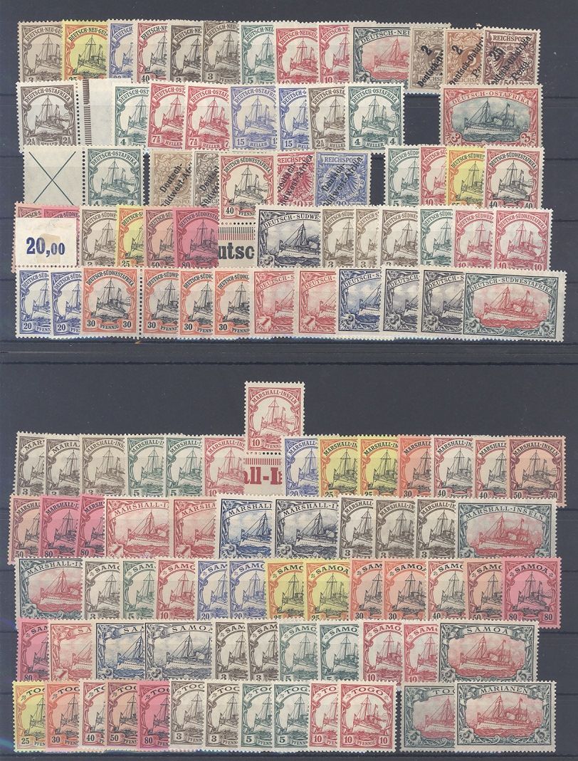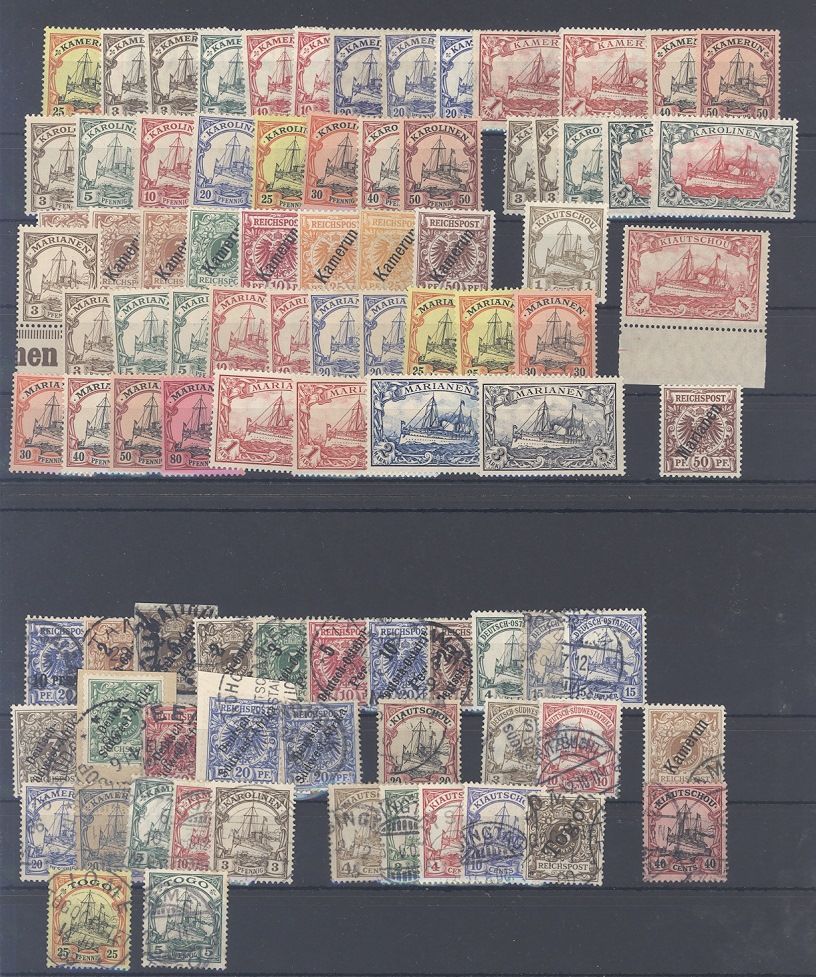 Deutsche Kolonien, umfangreicher */**/gestempelter Posten mit auch so einigen ** Werten und auch neun 5 Markwerten auf vier Steckkarten, einfach alles zusammengesteckt mit auch Einheiten und Briefstücken. Vollkommen unberechnet, sollte bereits aufgrund der Materialfülle ein nettes Schnäppchen sein.
