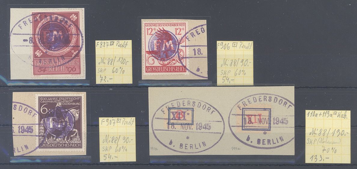 Deutsche Lokalpost Fredersdorf, , interessanter Posten Briefstücke bestehend aus vier verschiedenen Briefstücken. Die Zettel des Sammlers sind mit dabei, hatte wohl einmal 313 DM gekostet