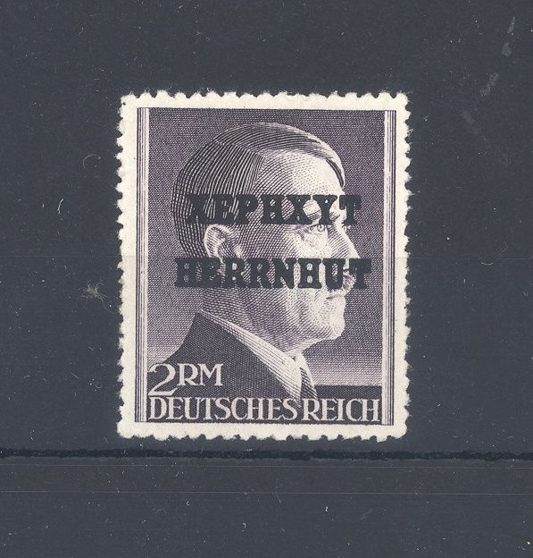 Deutsche Lokalpost Herrnhut Michel Nummer VIIIa, 2 RM Freimarke ungebraucht *, es ist ein alter Befund vorhanden, in dem erwähnt wird, dass es wohl nur einen Bogen von 25 Stück gibt, in jedem Fall selten einmal angeboten!