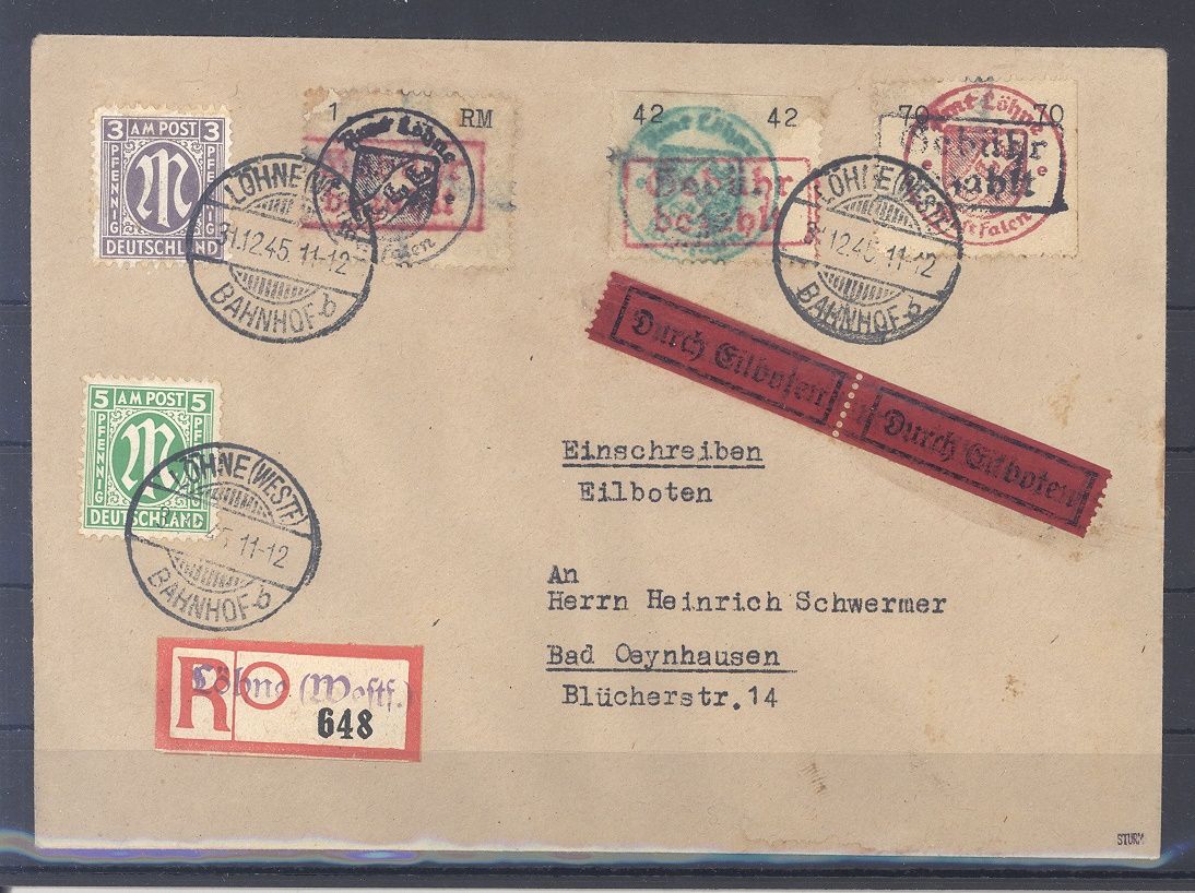Deutsche Lokalpost Löhne, sehr interessanter Eilboten Brief frankiert mit etwas stockigen Michel Nummer 1/3 aus Löhne nach Bad Oeynhausen mit rückseitigem Ankunftsstempel gelaufen. Der Michel für lose gestempelt beträgt 750,00 Euro, sehr nett!