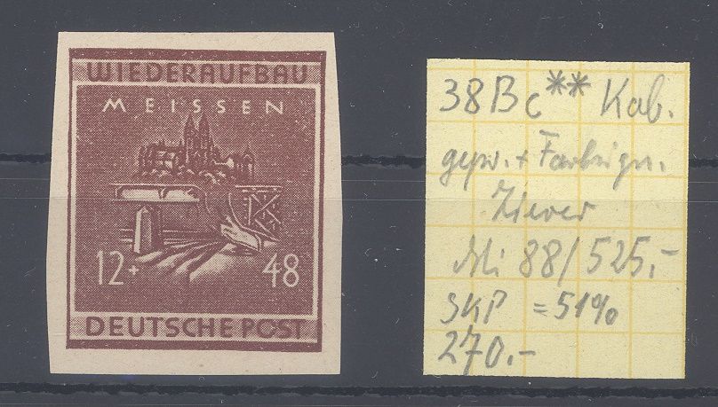 Deutsche Lokalpost Meißen Michel Nummer 38 Bc, 12 Pfg. Freimarke ungezähnt **, sollte die bessere b Farbe laut aktuellem Michel sein, geprüft mit Altprüfung. Der Zettel des Sammlers ist mit dabei, hatte wohl einmal 270 DM gekostet