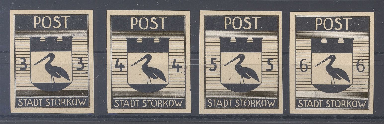 Deutsche Lokalpost Storkow, vier verschiedene Probedrucke ungebraucht (*). Der Michel passt hier nicht, selten einmal angeboten!