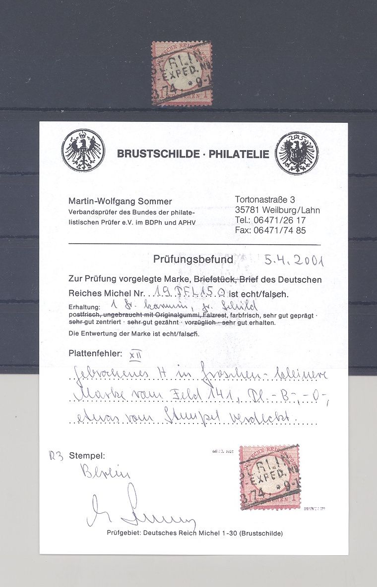 Deutsches Reich, 1 Groschen großes Brustschild mit dem Plattenfehler X II gestempelt. Es liegt ein Befund BPP vor, hat bereits einiges gekostet, ist mit eingescannt.
