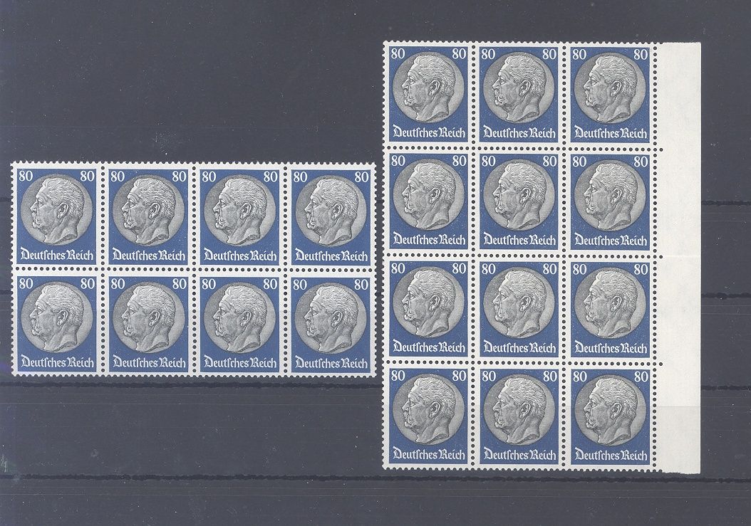 Deutsches Reich, 20 x Michel Nummer 494, 80 Pfg. Hindenburg 1933 ** in zwei Einheiten als Posten.