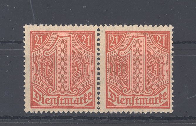 Deutsches Reich Dienst Michel Nummer 22 I, 1 Mark 1920 mit dem Plattenfehler I **.