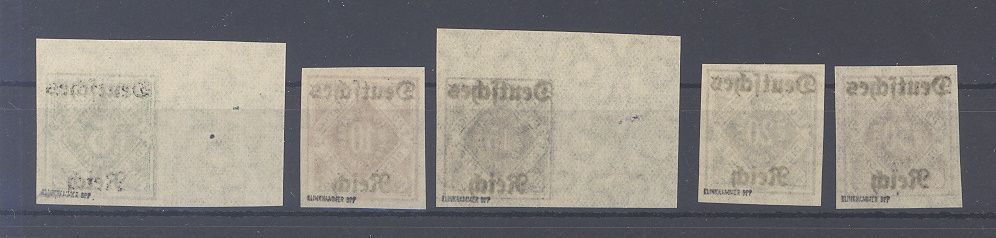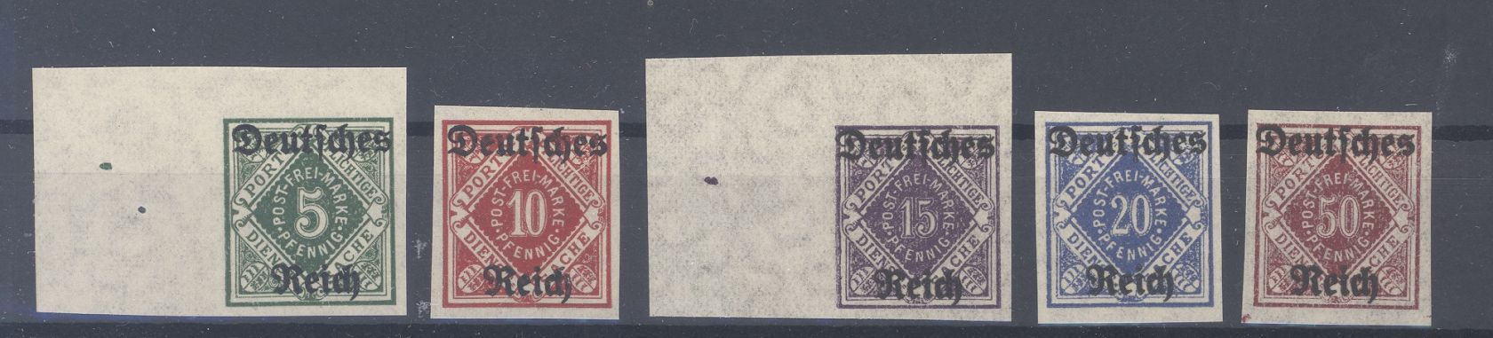 Deutsches Reich Dienst Michel Nummer 52/56, Freimarken 1920 ungezähnt **. Jeder Wert ist geprüft BPP, selten einmal angeboten!