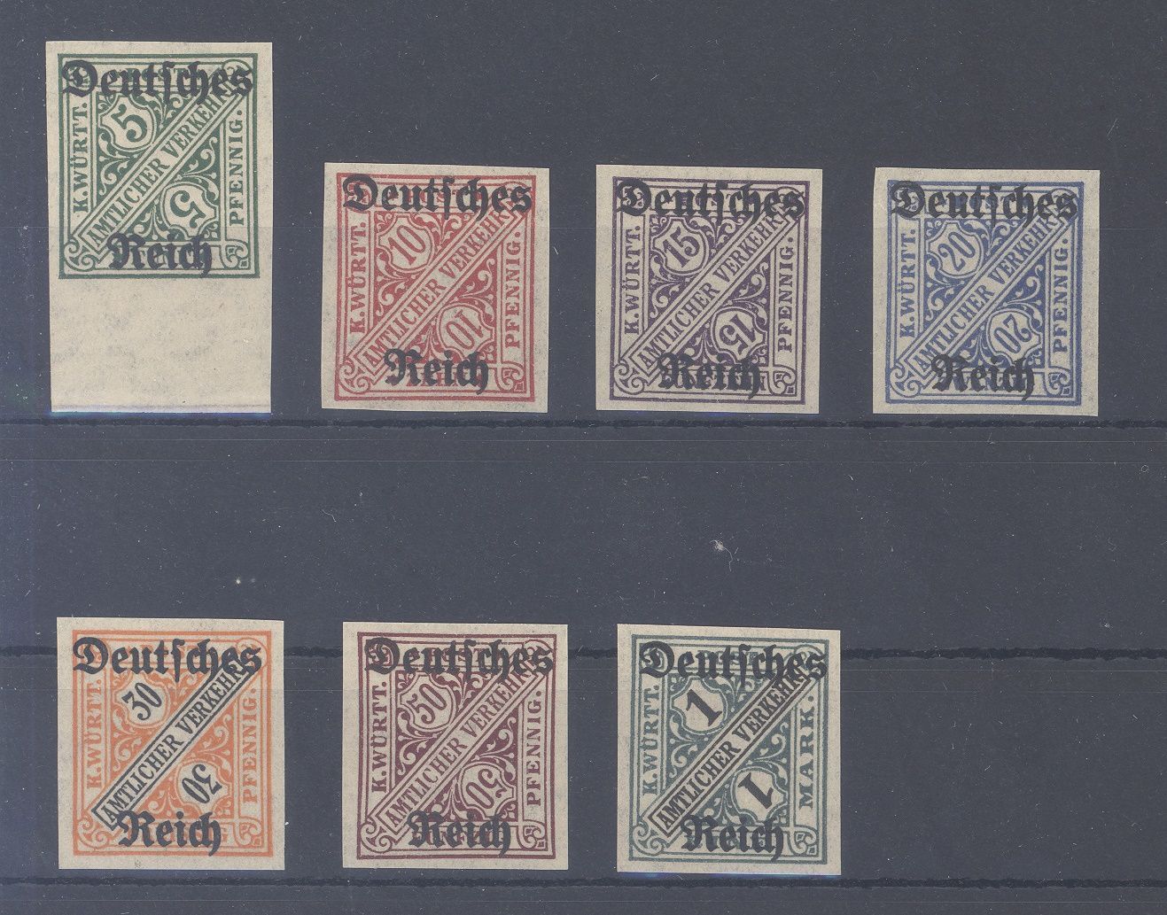 Deutsches Reich Dienst Michel Nummer 57/64, Freimarken 1920 ungezähnt in den Hauptnummern komplett **, ein schöner Satz. Jeder Wert ist geprüft BPP.