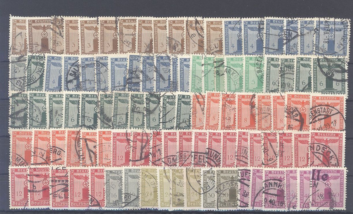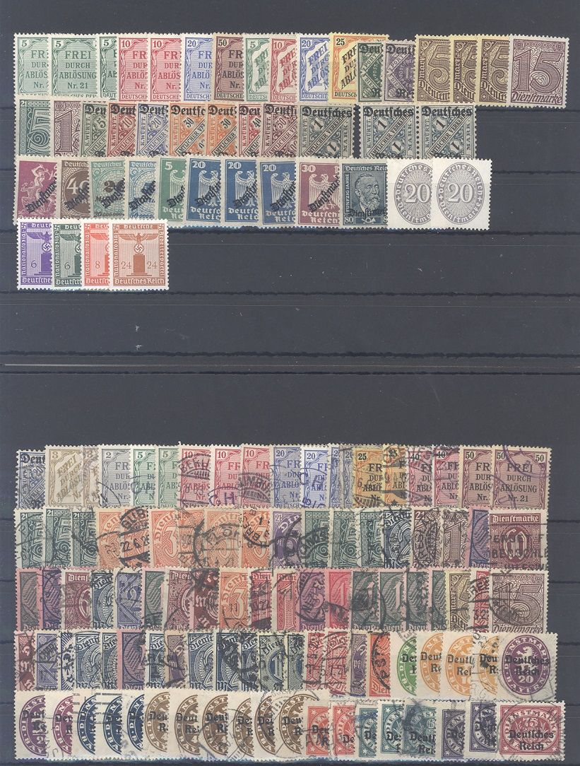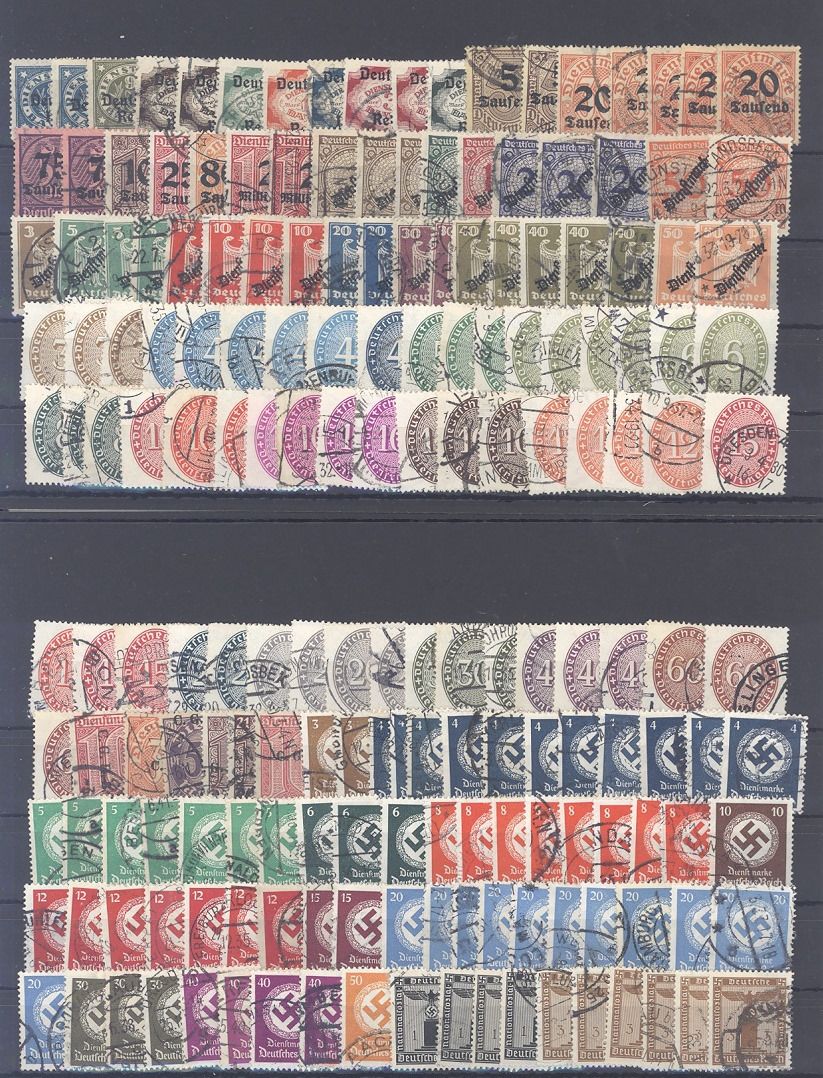 Deutsches Reich Dienst, umfangreicher Posten auf fünf Steckkarte, einfach zusammengesteckt. Vollkommen unberechnet, sollte bereits aufgrund der Materialfülle ein nettes Schnäppchen sein.