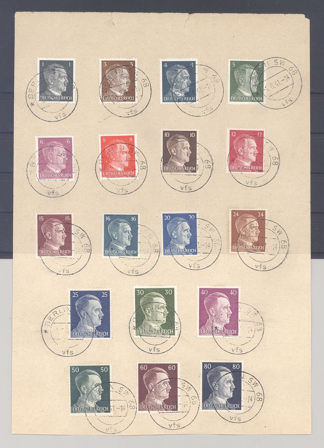 Deutsches Reich, FDC Michel Nummer 781/98, Freimarken 1941 auf einmal gefaltetem Blankoblatt, dieses oben etwas eingerissen, keine Marken betroffen.